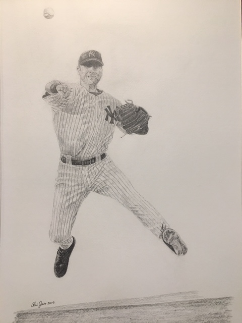 New York Yankee Shortstop Derek Jeter throwing the ball to First Base