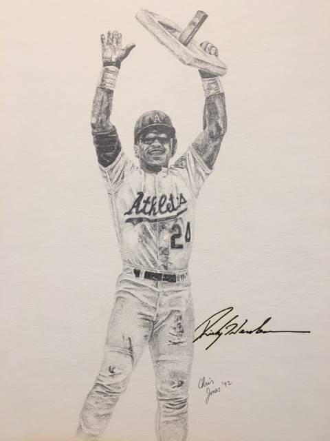 Rickey Henderson celebrating all-time stolen base record (signed by Rickey)