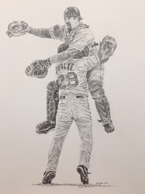 Jason Varitek and Keith Foulke celebrating 2004 Boston Red Sox World Series win